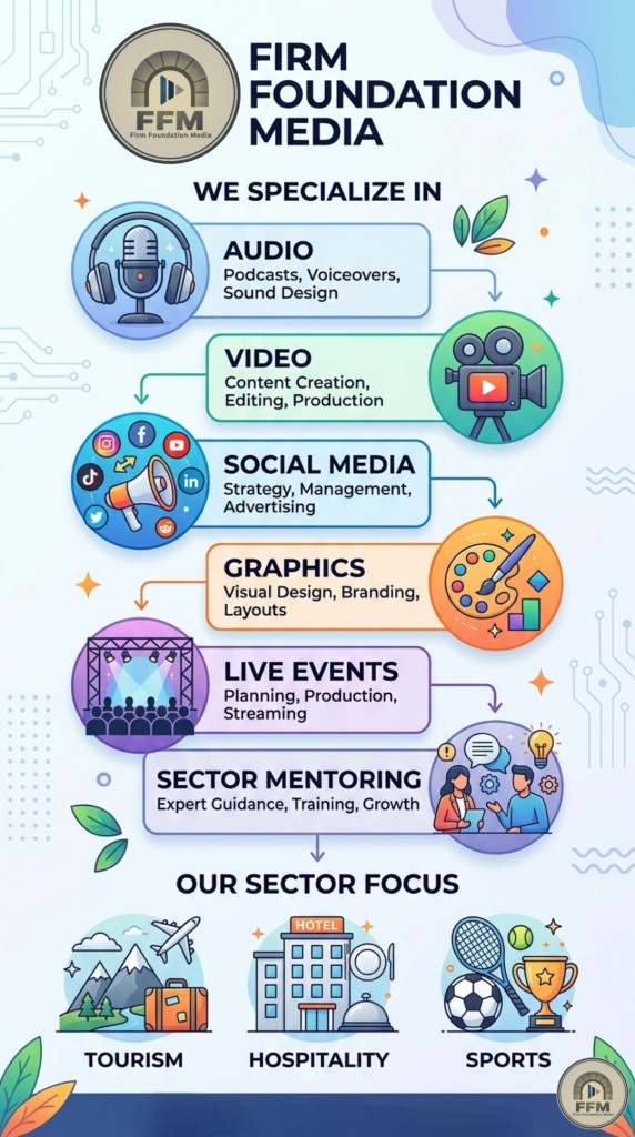 FFM specializes in audio, video, graphics, live events and multimedia mentoring with a focus on the tourism industry, hospitality sector and the world of sports.